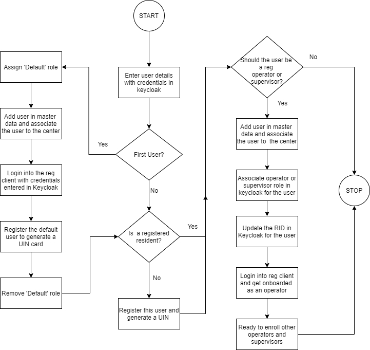 The User details of the subsequent Officers and Supervisor must be created in KeyCloak with appropriate roles assigned (as per Step 1) and their RIDs should be mapped in KeyCloak (as per Step 4) so that they can login to Registration Client.