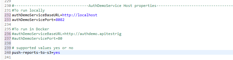 Comment out the lines beginning with authDemoServiceBaseURL and authDemoServicePort intended for Docker