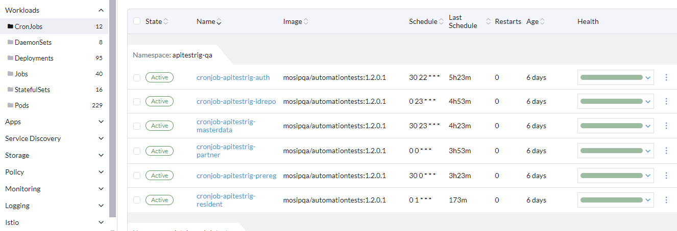Cronjob-apitestrigshould be upBelow Config Maps should be proper