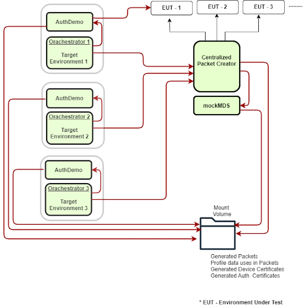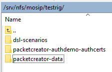 The MountVolume component is responsible for downloading and mounting specific folders from an NFS (Network File System) shared storage (/srv/nfs/mosip/testrig), which is accessible by both DSLtestrig and PacketCreator. These folders, namely: