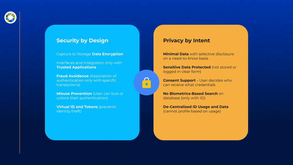 The image below highlights MOSIP’s security and privacy principles, emphasizing its "Security by Design" and "Privacy by Intent" approach.