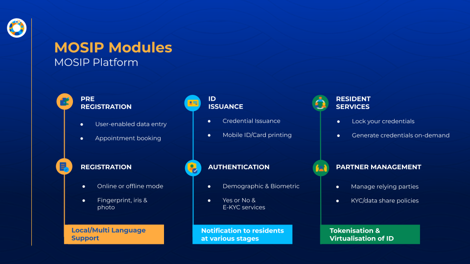 [MOSIP (Modular Open-Source Identity Platform)](https://www.mosip.io/#1) is a secure, scalable, and open-source framework designed to help governments and organizations build foundational identity systems. It offers a flexible and configurable approach, allowing countries to tailor their national ID systems to meet specific requirements while ensuring privacy, security, and interoperability.